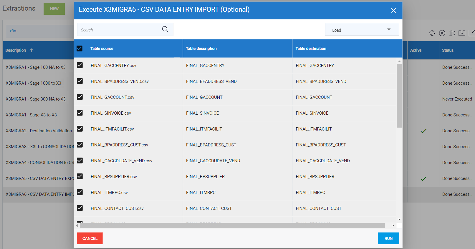 3. Dans DataSync, exécutez l'extraction 6 pour importer le CSV et mettre à jour les tables finales.