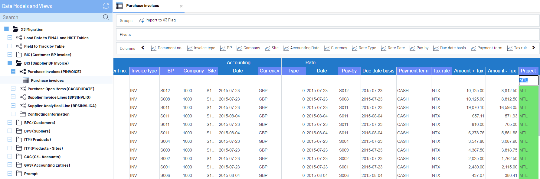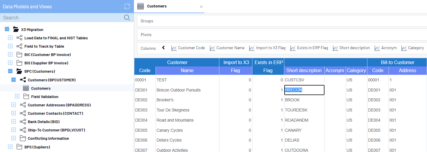 Vous pouvez également faire glisser et déposer le Import to X3 Flag dans la section Groupes. Cela permettra de regrouper tous les champs que vous suivez pour la migration.