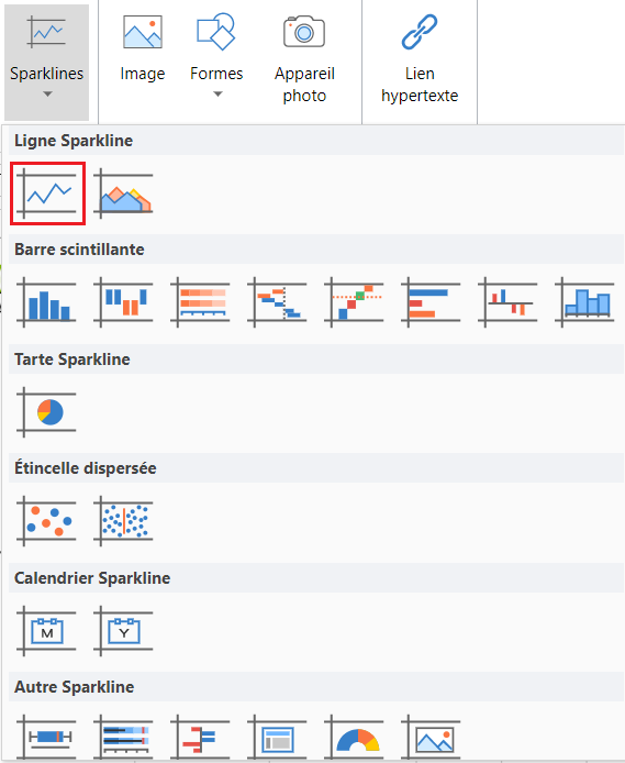 Cliquez sur Sparkline et sélectionnez le sparkline ligne sous Ligne Sparkline dans la liste.