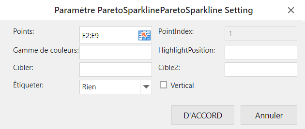 | Paramètre de sparkline pareto | Description |