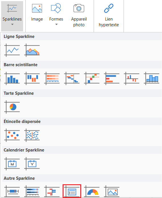 Cliquez sur Sparkline et sélectionnez le sparkline bloc de gamme sous Autre sparkline dans la liste.