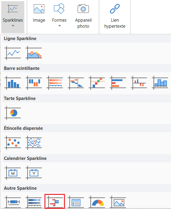 Cliquez sur Sparkline et sélectionnez le sparkline de variance sous Autre sparkline dans la liste.