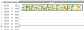 Un sparkline de type mois a 54*7 carrés. La direction horizontale est la semaine de l'année (de gauche à droite, du 1er au 54e). La direction verticale est le jour de la semaine (de haut en bas, du dimanche au samedi). La couleur des jours de l'année dépend de la valeur (du minimum au maximum, de la couleur de départ à la couleur du milieu jusqu'à la couleur de fin).