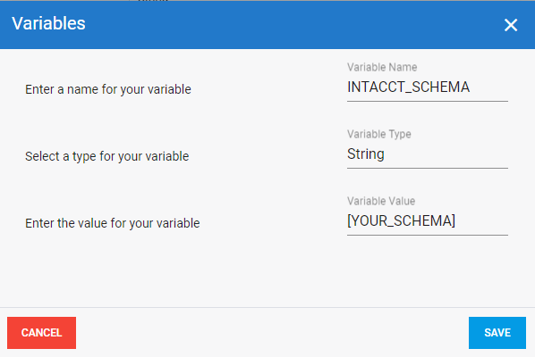 Create and Configure the INTACCT_SCHEMA Global Variable.