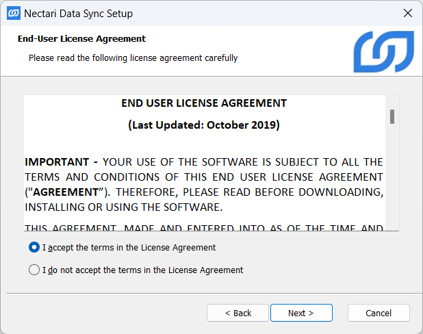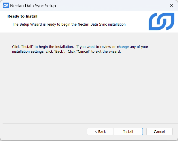 1. Télécharger le paquet d'installation Nectari Data Sync.exe à partir de https://nectari.sharefile.com.