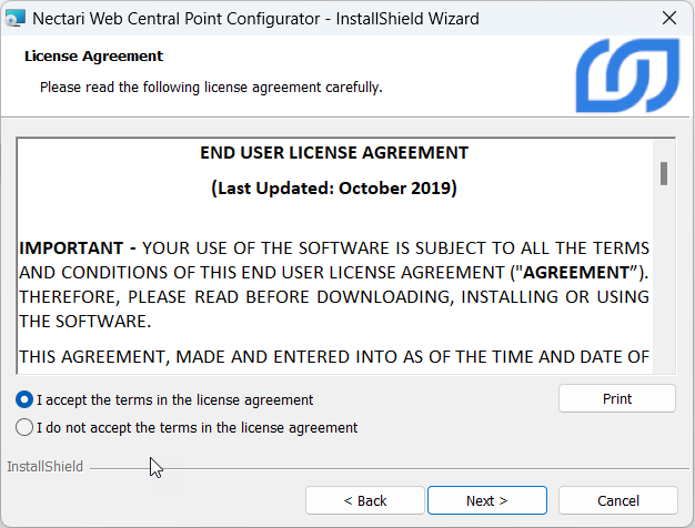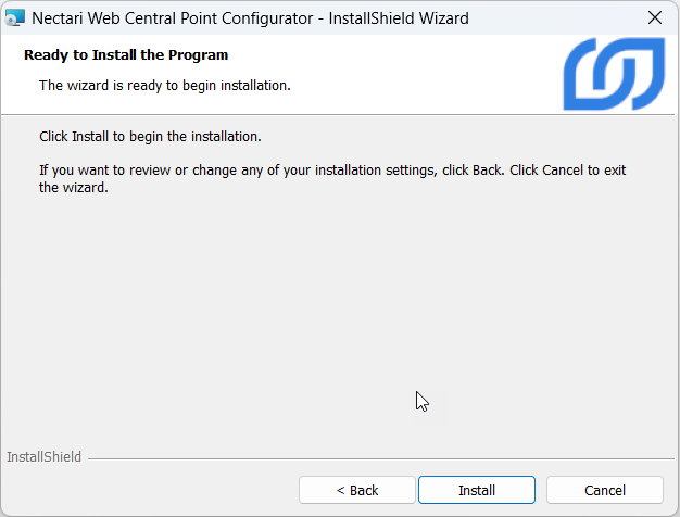 Exécutez l'application Nectari Web Central Point Configurator.exe et cliquez sur Next.
