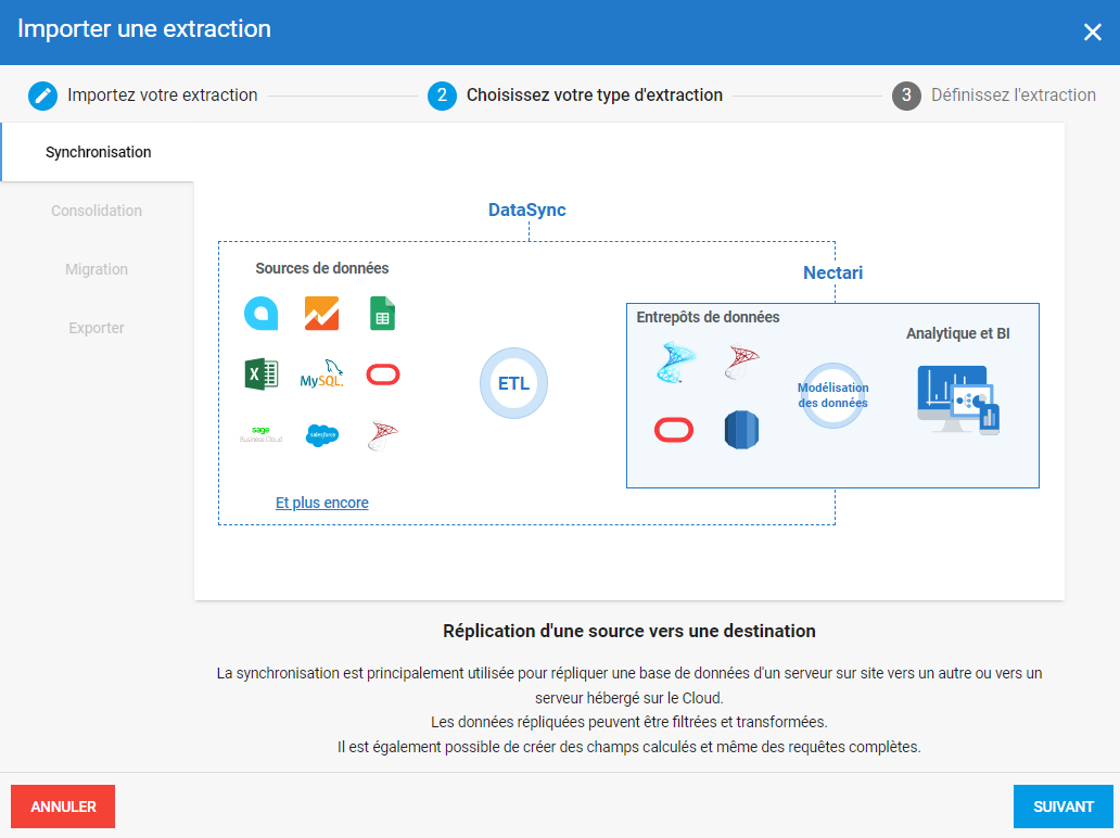 3. Le type d'extraction par défaut est déjà sélectionné. Cliquez sur Suivant.