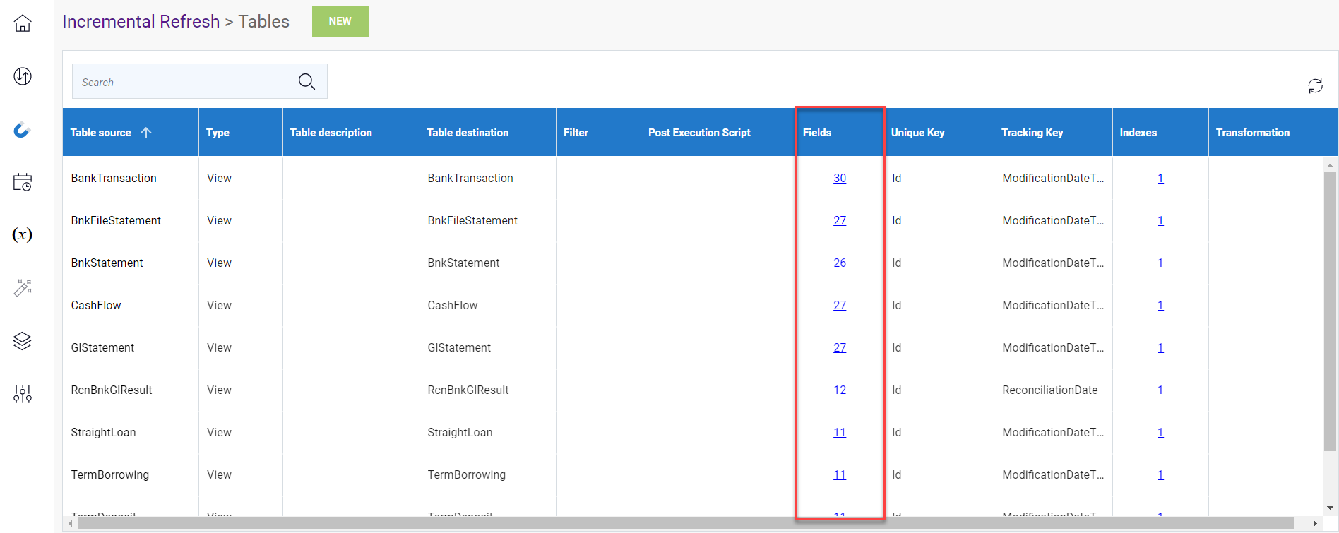 8. La fenêtre Extractions passera automatiquement la fenêtre Tables. Vérifiez vos tables et assurez-vous que tous les champs sont présents. Si des champs sont manquants, recommencez les étapes d'import.