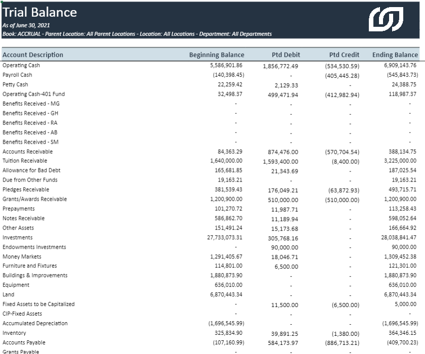 Ending Balance : Cette colonne est calculée en ajoutant le solde d'ouverture aux débits et en soustrayant les crédits. Elle représente le solde du compte à la fin de la période comptable.