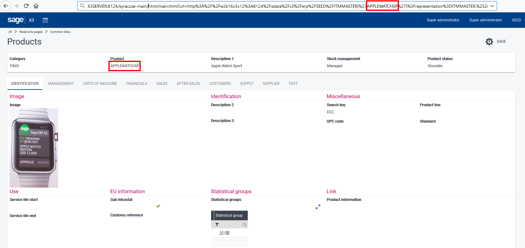 ExampleIn Sage X3, read-only pages provide a link to specific objects. If a filter is applied to a read-only page, it displays in the URL.