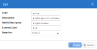 • Based on: If required, enter the base on language. If no description exists in the dictionary for the current language selected, Nectari will retrieve the default language from the Based on drop-down.