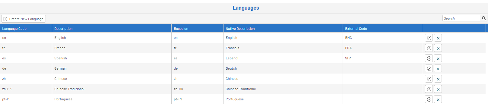 The Languages option will allow the Administrator to configure the list of languages available to the Users.