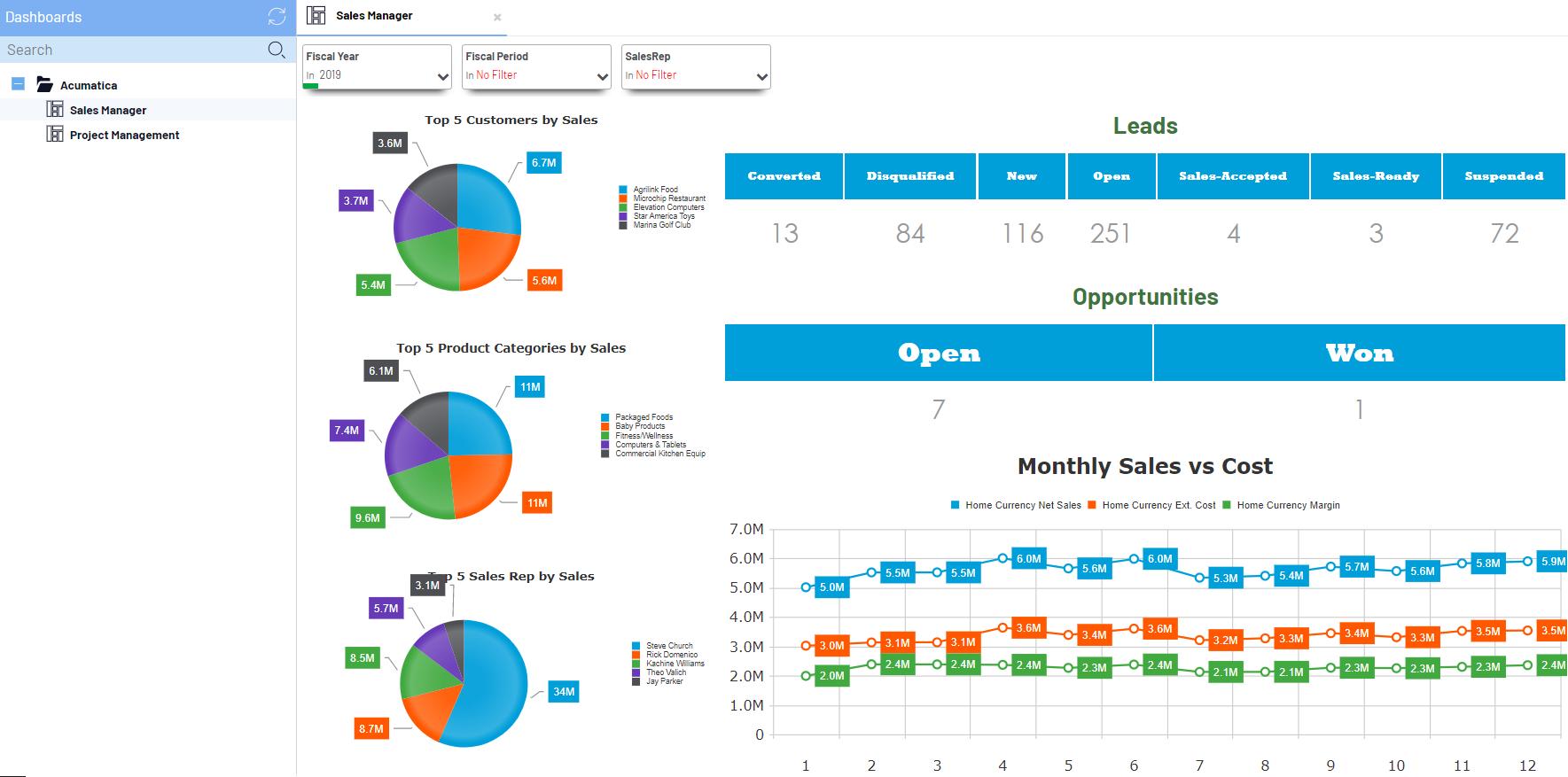 Acumatica Predefined Dashboards