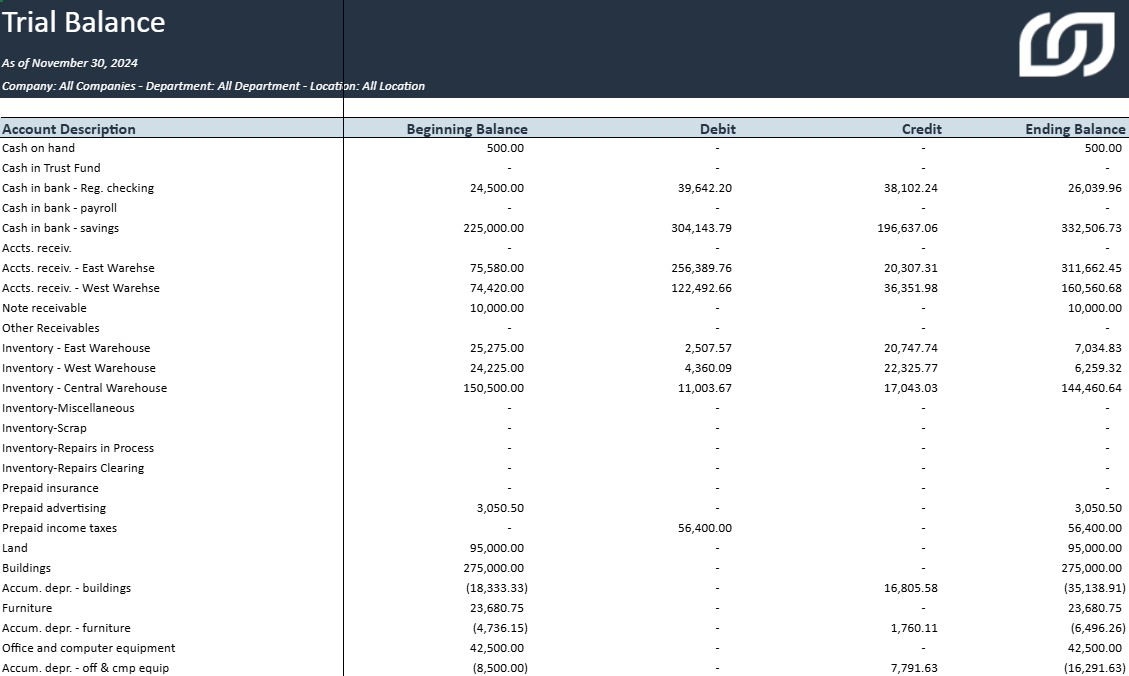 Classic Trial Balance