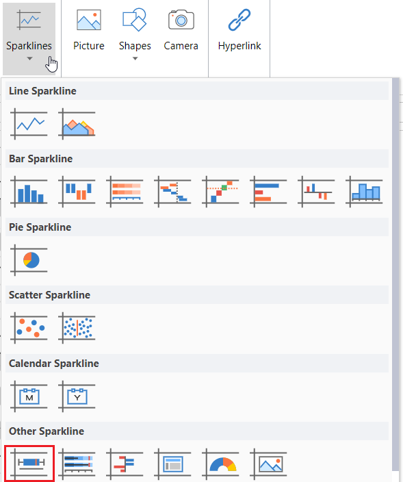 Click Sparkline and select the Box Plot sparkline under Other Sparkline from the list.