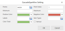 | Minimum | (Optional) Number or reference that represents the minimum values of the display area, such as -2000; the default value is the minimum of the sum (the sum of the points' value). |