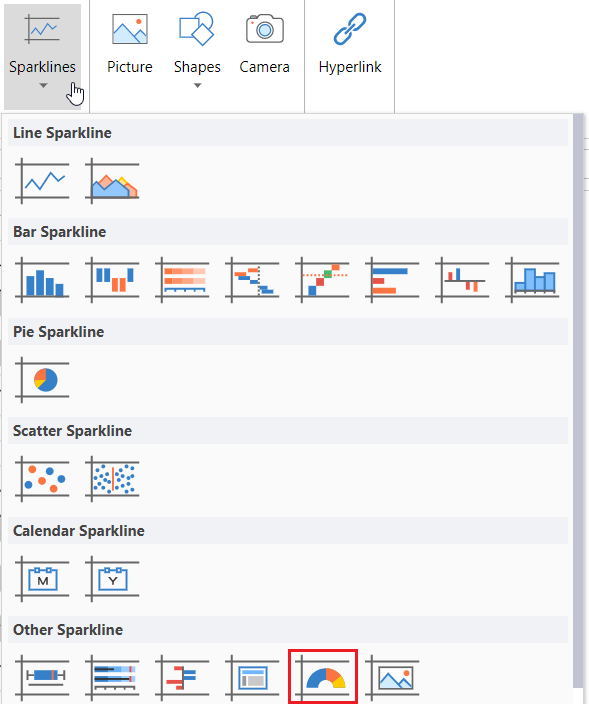 Click Sparkline and select the Gauge KPI sparkline under Other Sparkline from the list.
