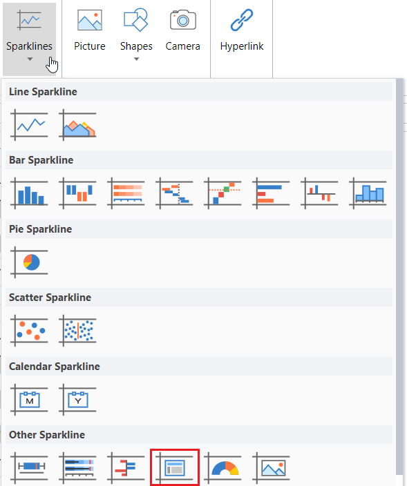 Click Sparkline and select the RangeBlock sparkline under Other Sparkline from the list.