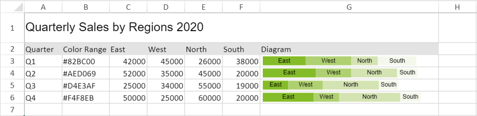 | ColorRange | (Optional) Reference that represents the range of cells containing all the colors, such as "B1:B4"; the default value is generated by color. |