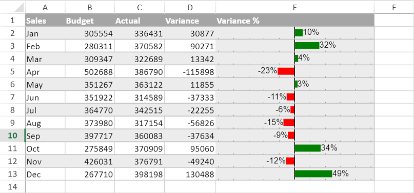 To create variance sparklines in the workbook: