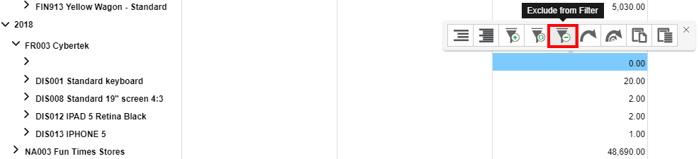 Exclude from Filter: Excludes a specific selection from the current filter.