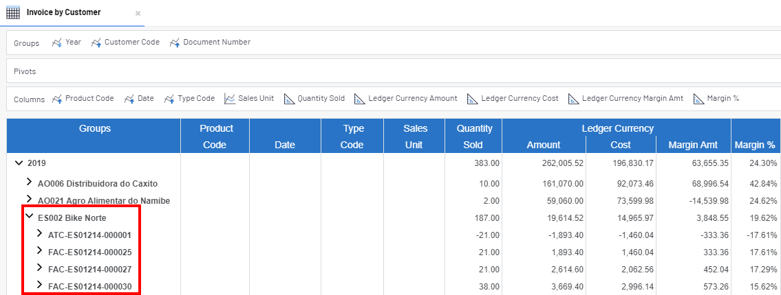 We clicked the arrow next to ES002 Bike Norte to view the detailed information for that specific customer.