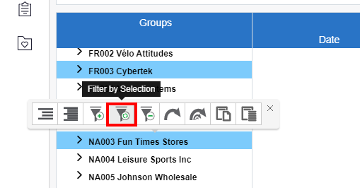 - Select one or more rows to be filtered.