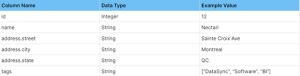 Problème connu : En raison de la nature dynamique des tableaux, la précision des propriétés de ce type peut être sous-estimée. Il convient donc de faire preuve de prudence lors de la sélection de la précision dans la table de destination. Sinon, l'extraction risque d'échouer en raison d'erreurs de troncature. Nous recommandons de fixer la précision à MAX pour ces colonnes.