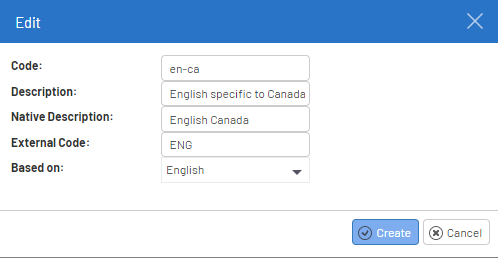 Code: The language code (e.g. en-ca for English Canada).