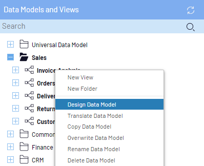 In the Data Models and Views tab, right-click any folder (including the root folder) and select New Data Model.