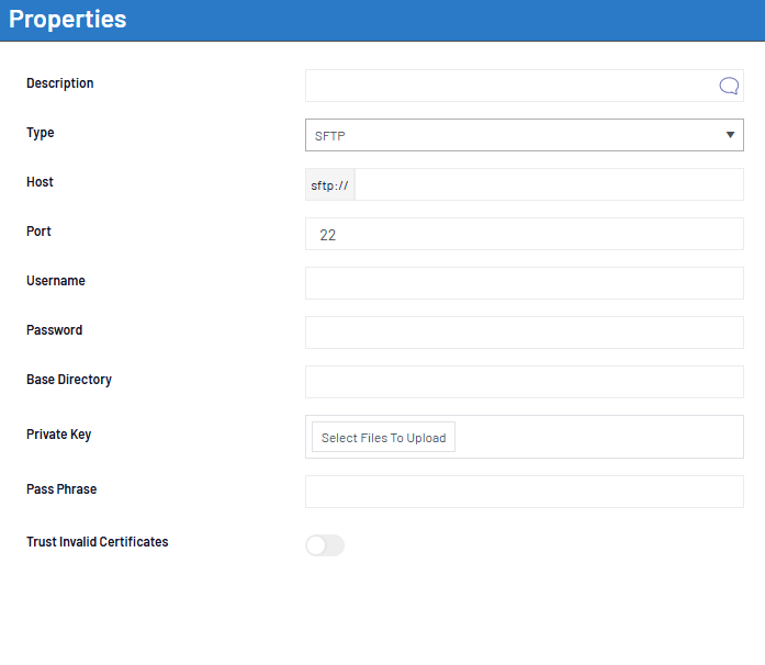 | Base Directory | The root directory where files will be uploaded or downloaded. Leave empty to use the user’s root directory. |