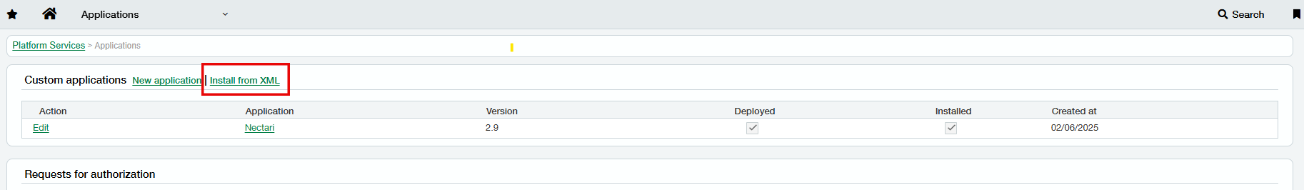 From Platform Services, go to Applications and select Install from XML: Nectari_ProcessDelete.xml. This file can be found in ShareFile.
