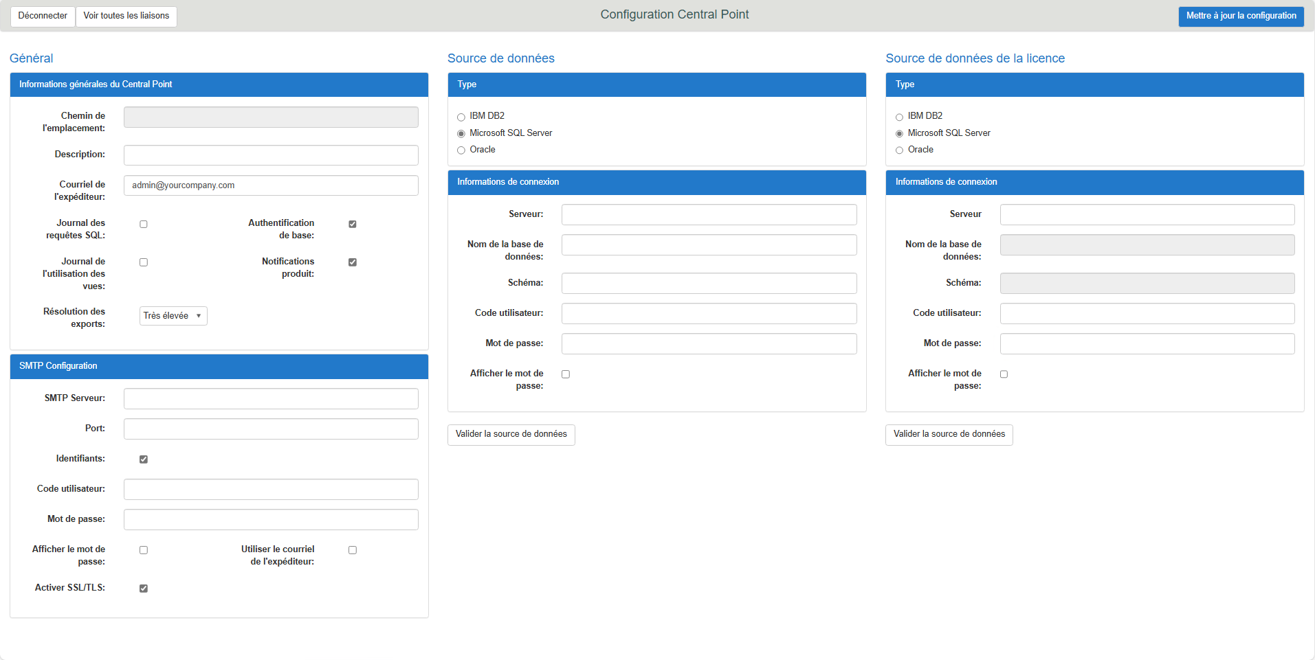 Central Point Configuration - Source de données et Source de données de la licence | Description |