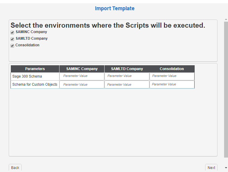 - Sélectionnez l'environnement dans lequel les scripts seront exécutés et cliquez sur Suivant.
