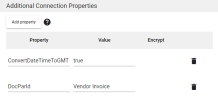 Ajoutez la propriété DocParId dans le panneau Autres propriétés de la connexion.