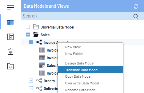 - Dans l'onglet Modèles de Données et Vues, cliquez droit sur un Modèle de Données et sélectionnez Traduire le modèle de données.