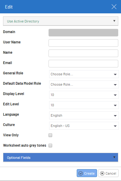 - Choose the level of authorization required to view the columns of a Data Model. This will be the maximum level authorized for this user. Please refer to Data Model Designer for more information on how to change the columns display level.