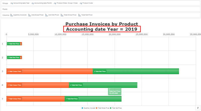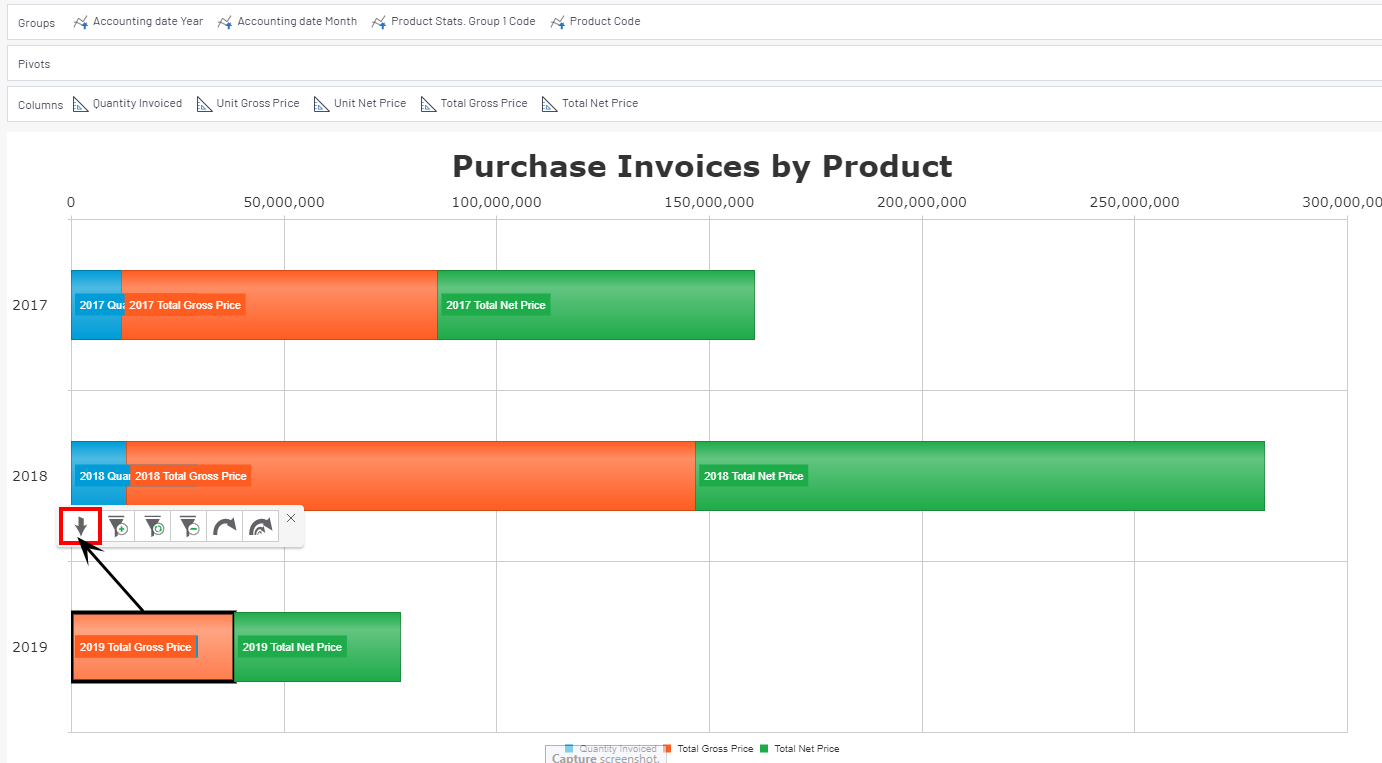 - Select a row or click on a chart area then click on the Expand/Drill down option.