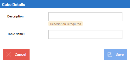 - Annule la création et affiche la liste des Cubes.
