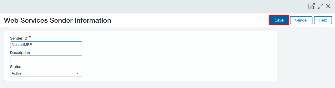 - In the Sender ID field, enter NectariMPP and click on Save.