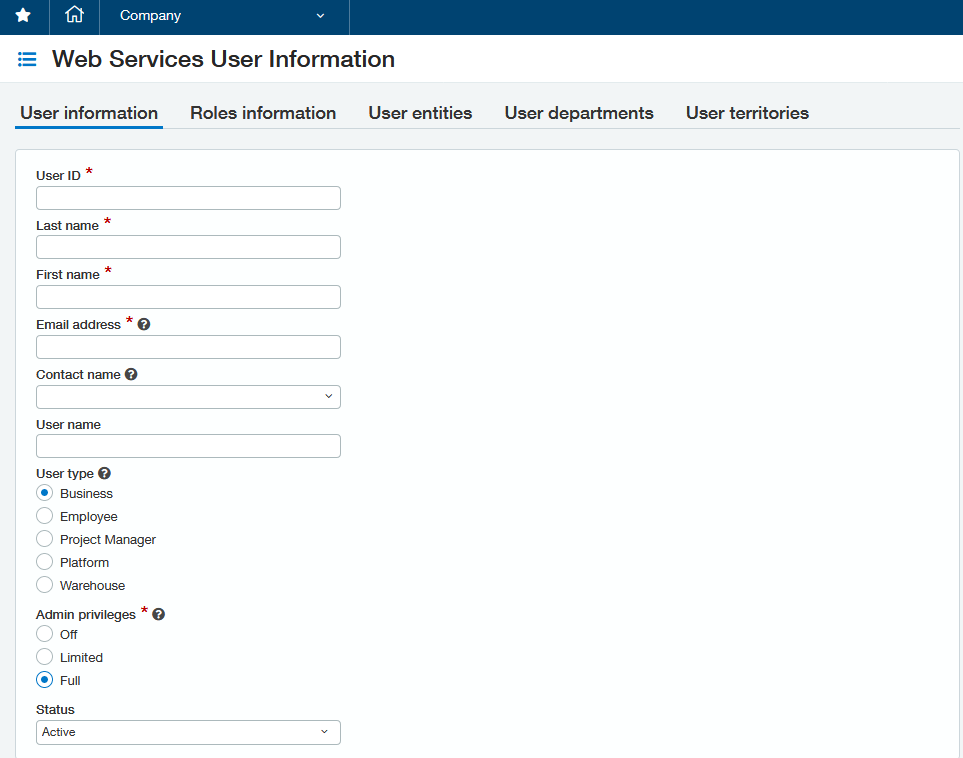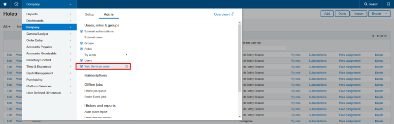 - In the upper bar, click on Web Services users, located in the Company tab.