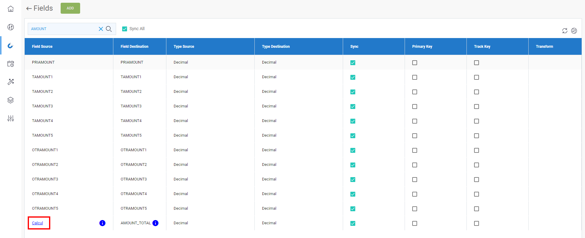 • Click on the CALCUL hyperlink in the Field Source column to change the calculation any time.