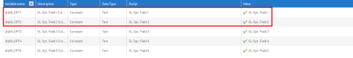 In this example, we've modified the @@GLOPT1 and @@GLOPT2 global variables by following the procedure described in Editing a Global Variable.