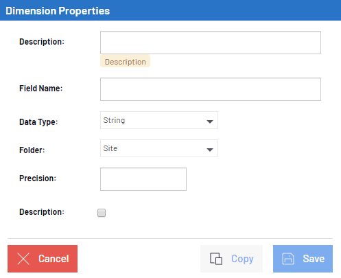 Pour créer une Dimension, vous devez d'abord créer un Dossier Groupe de Dimensions.
