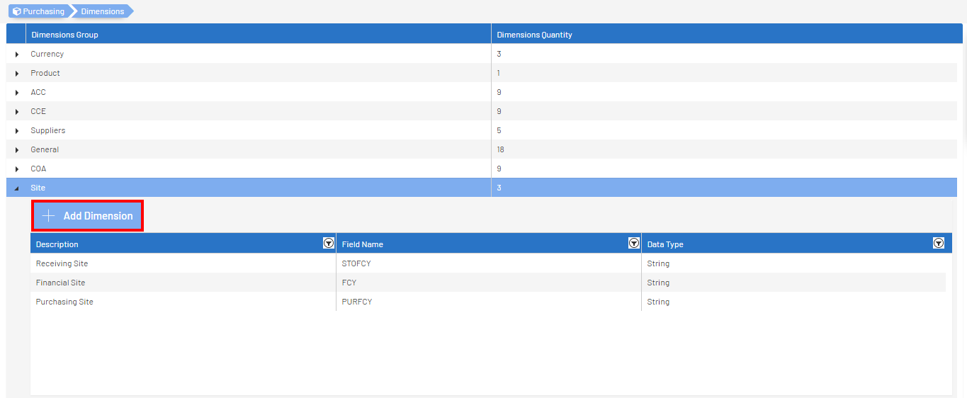 - Sélectionnez le Groupe de Dimensions dans lequel la Dimension se situe.