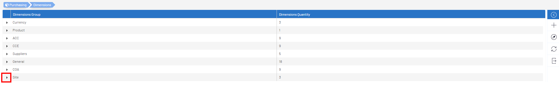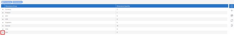 - Cliquez sur la flèche déroulante pour afficher les Dimensions dans le Groupe de Dimensions.