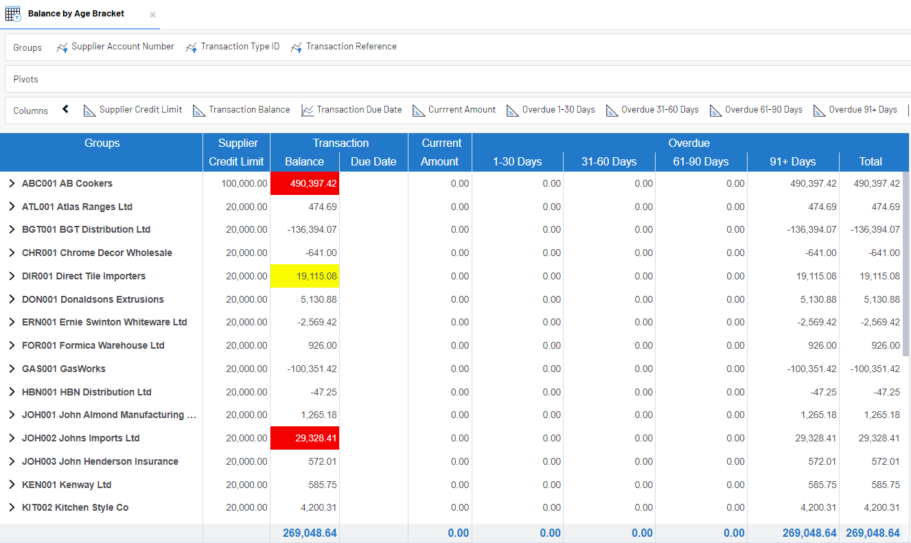 Balance by Age Bracket Current Transactions Opening Balance Invoices Invoices Credit Notes Payments Receipts |