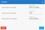 Configure your variable as pictured below. Replace [YOUR_SCHEMA] with the schema name defined in your extractions, and click Save.